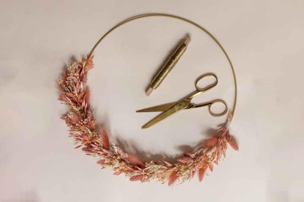 Apprenez à identifier les variétés de fleurs ainsi que les techniques pour réaliser une demi-couronne de fleurs séchées.